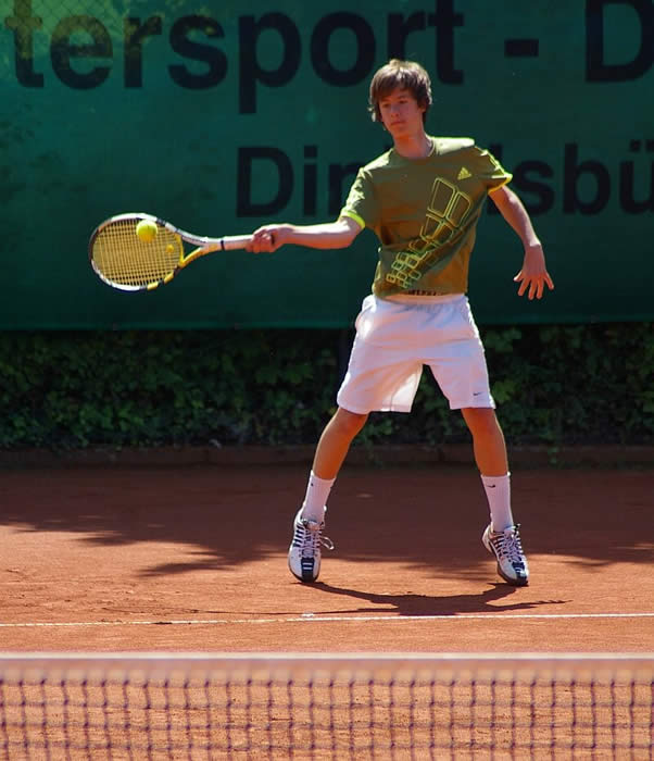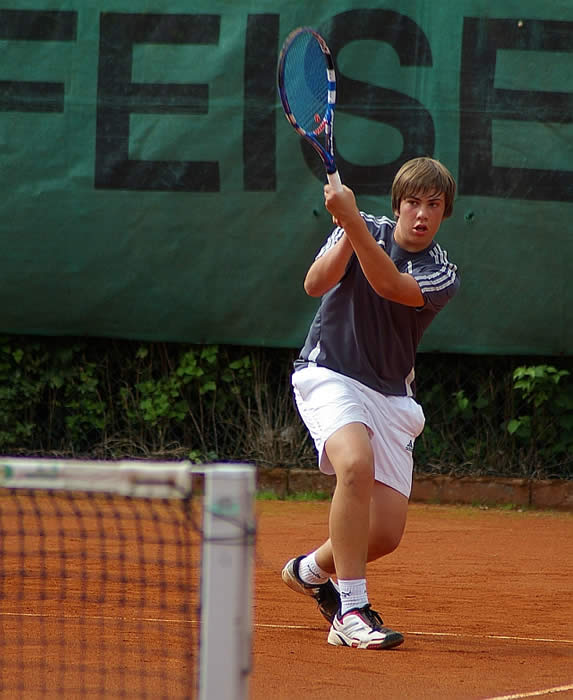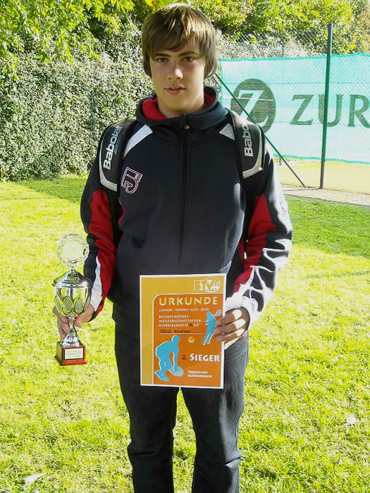 Bild rechts: Eine souveräne Leistung zeigte unser Nachwuchsspieler Nicolas Pötzl. Im Endspiel siegte er glatt mit 6:3 und 6:0.