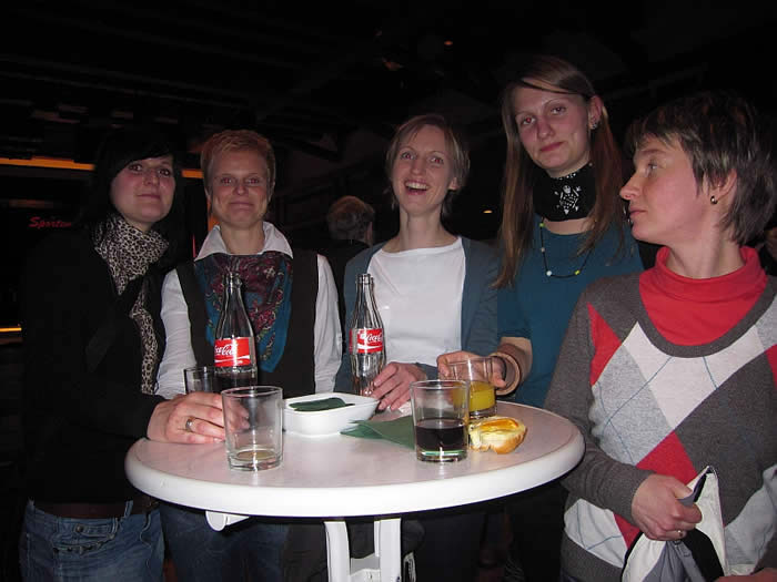 Bild rechts: Ein Wohl auf das Geburtstagskind Dr.Wolfgang Kelm (rechts) und die Damen 40 -Truppe |
