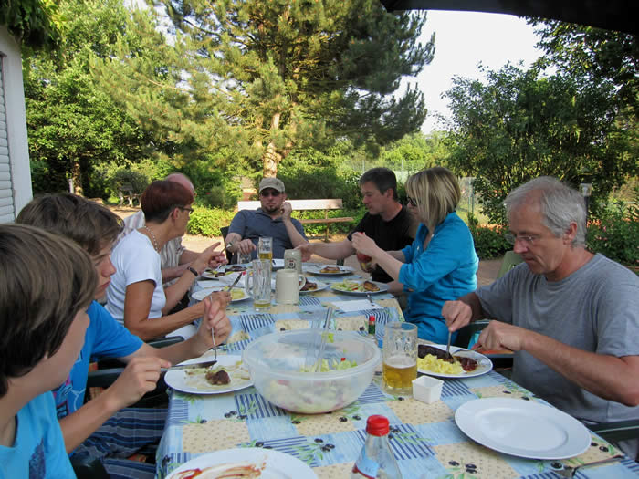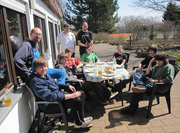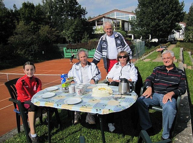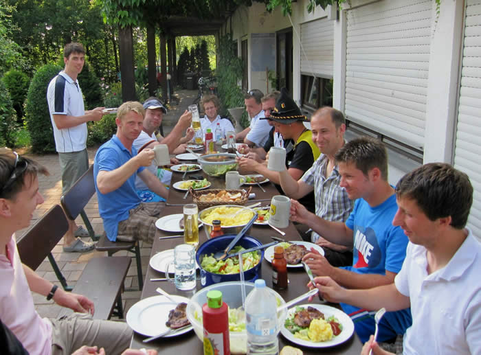 Bild rechts : Nach dem Spiel wurde mit unseren sympathischen Tennisfreunden von Rückersdorf der Saisonausklang mit einer zünftigen Brotzeit gefeiert. |