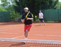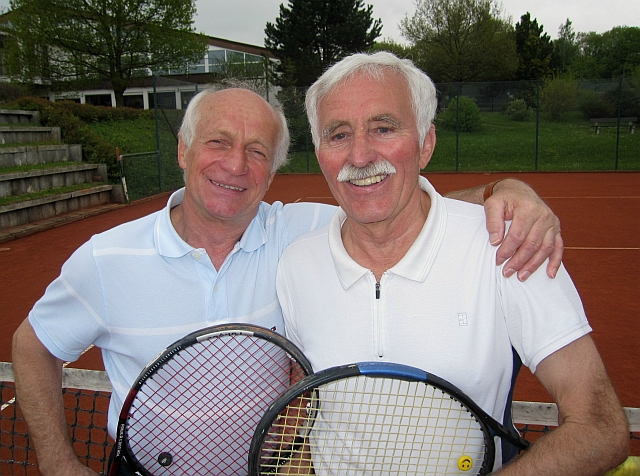 Bild links: In einer wahren Hitzeschlacht mit tollen Ballwechseln musste Willy Möller gegen den spielstarken Bernd Haaßengier an die Leistungsgrenze gehen, um im Super-Tiebreak mit 11:9 zu gewinnen.