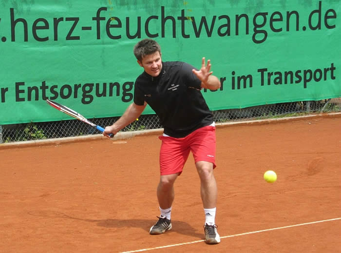 Ein erfolgreiches, aber hart umkämpftes erstes Saisonspiel absolvierten die Feuchtwanger Tennis – Herren beim sympathischen Aufsteiger TC Roßtal. Dank der Feuchtwanger Doppelstärke konnten drei Doppel gewonnen werden und somit ein 6:3 Sieg eingefahren werden. Andreas Möller und Florian Krommer brachten in der ersten Einzelrunde das Team aus der Kreuzgangstadt schnell mit 2:0 in Führung. Möller ließ seinen Gegner Achim Bauer an Position 6 dank eines fehlerfreien und variablen Spiels nicht den Hauch einer Chance und bezwang ihn klar in zwei Sätzen. Einen guten Start in die Saison erwischte auch Florian Krommer, der gegen Achim Hauschka in Position zwei mit wuchtigem Aufschlagspiel und solidem Grundlinientennis nichts anbrennen lies. Lediglich Daniel Rudek, dessen Spiel von vielen Höhen und Tiefen geprägt war, musste sich seinem Gegner im Match – Tie Break am Ende etwas unglücklich geschlagen geben. Das Match von Peter Krommer gegen Liebhard Bidner war geprägt von vielen Fehlern auf beiden Seiten. In den entscheidenden Tie-Breaks nahm Krommer das Spiel aber in die Hand und glänzte durch perfektes Serve and Volley Spiel und errang den dritten wichtigen Einzelpunkt für die Feuchtwanger. Matthias Gräbner fand leider erst zu spät in sein gewohntes druckvolles Spiel gegen Yannick Haußühl. Trotz einer deutlichen Leistungssteigerung im zweiten Satz reichte es nicht für einen vierten Einzelpunkt. Wegen einer Ellbogenverletzung leicht gehandicapt fand auch Ulrich Peschke, die neue Nummer 1, nicht zu seinem gewohnten druckvollen Topspinspiel. Er spielte sich im ersten Satz sehr schnell eine 4:1 Führung heraus, konnte aber dieses Niveau nicht halten und musste sich letztendlich im Match-Tie-Break knapp geschlagen geben, da sein Gegner immer geschickt das Tempo aus dem Spiel nahm und Peschke viele Bälle leichtfertig vergab. Somit musste nach 3:3 Zwischenstand die Doppel die Entscheidung bringen. Peschke/Krommer F. setzten sich in einem spannenden 1er Doppel mit vielen sehenswerten Ballwechseln gegen ihre Gegner in zwei Sätzen durch. Matthias Gräbner nahm im 2er Doppel oft das Heft in die Hand und bog zusammen mit Daniel Rudek ein bereits verloren geglaubtes Match noch zu einem Feuchtwanger Sieg um. Den sechsten Matchpunkt holten sich Krommer P. und Möller Andy im 3er Doppel. Ein abwechslungsreiches und spannendes Match konnten die Feuchtwanger Dank einer am Ende sehr konzentrierten Leistung wieder im Match Tie Break für sich entscheiden und machten den ersten Saisonerfolg für die Feuchtwanger Tennis Herren perfekt.