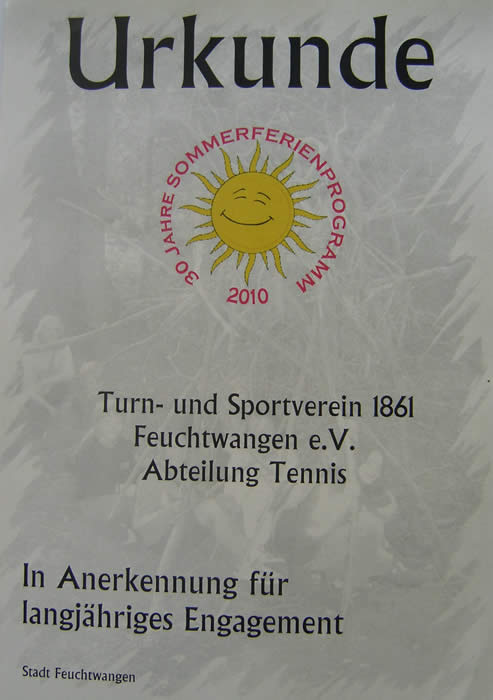 Mit großem Beifall wurde unser langjähriger, allseits beliebter Willi Höft für seine 16 Jahre lange Tätigkeit als Platzwart bei uns in der Tennisabteilung bedacht. In seiner Lobrede würdigte der 1.Vorsitzende der Tennisabteilung, Helmut Peschke, die überaus positive Arbeit unseres Platzwartes Willi Höft, der dieseTätigkeit aus gesundheitlichen Gründen leider zum 31.12. 2009 beendete. Im von Peschke ausgestellten Zeugnis erhielt Herr Höft die "Note eins mit Stern" für sein langjähriges engagiertes und äußerst zuverlässiges Wirken als Platzwart und "guter Geist" der Tennisanlage.
