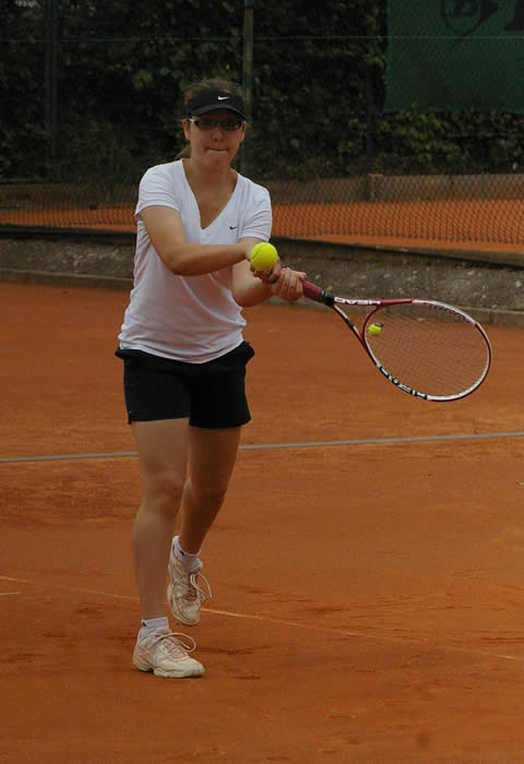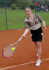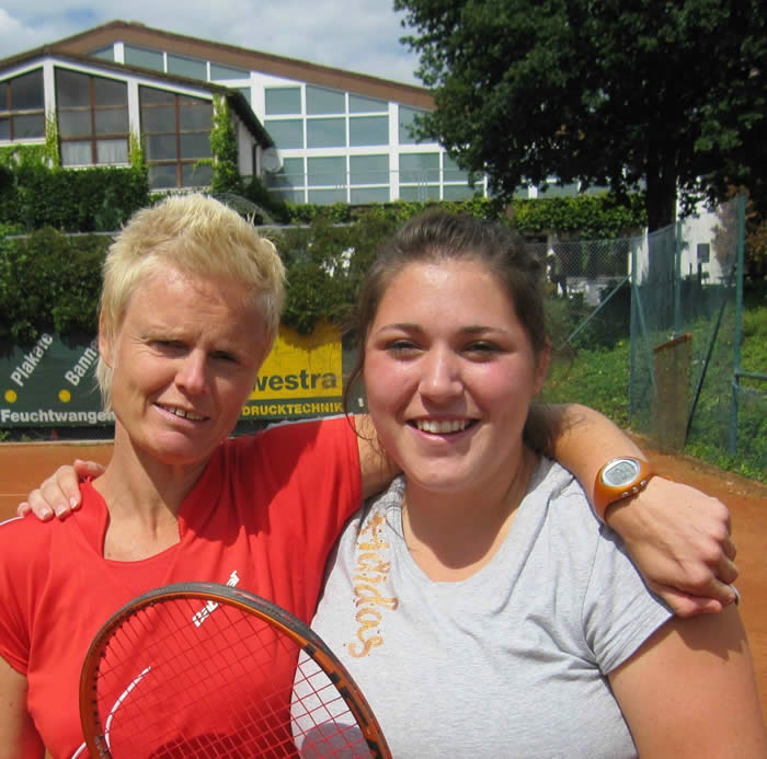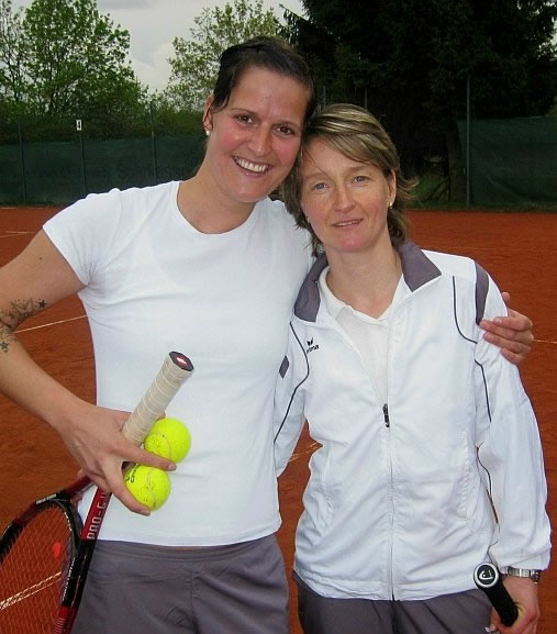 Einen verheißungsvollen 9:0 Heimsieg landete unsere Damenmannschaft gegen die stark eingeschätzten Damen von Grün-Weiß Fürth. In der ersten Spielrunde sorgte Dr.Jeanette Kelm (Bild links) mit einer starken Leistung für die 1:0 Führung, die Sarah Behlert mit nahezu fehlerfreiem Spiel (6:1,6:1) auf 2:0 ausbaute. Einen Einstand nach Maß hatte Neuzugang Jill-Victoria Rokusek (rechts im Bild) an Position vier, die ihre Gegnerin klar beherrschte und mit 6:2,6:3 siegte. In der zweiten Spielrunde zeigte Marion Volland ihre kämpferische Seite und sorgte mit ihrem Sieg im Super-Tiebreak (10:2) für die 4:0 Führung. Das 5:0 besorgte dann im Spitzenspiel Dr.Simone Stürzer, die ihre Gegnerin mit variablem Spiel klar niederrang. Die 6:0 Führung gelang dann an Position drei Claudia Klein, die mit großem Kampfeinsatz in zwei Sätzen siegte.