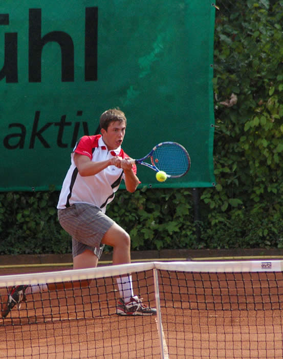 Härter als erwartet gestaltete sich für unsere Junioren zum Saisonauftakt das Auswärtsspiel in Muhr am See. Nicolas Pötzl bot an Position zwei eine überzeugende Leistung und fertigte seinen Gegner mit 6:1 und 6:0 ab. Nikolai Schühlein kämpfte wacker, führte in beiden Sätzen und unterlag dann aber letztendlich knapp mit 7:5 und 6:4. Im Spitzeneinzel zeigte Markus Hirsch eine spielerisch und kämpferisch gute Leistung, musste sich aber gewaltig anstrengen um mit 6:3 und 7:6 gegen den laufstarken Defensivspieler Patrick Kroiß zu gewinnen. Die 3:1 Führung für unsere Junioren besorgte dann der glänzend aufspielende Timo Lechner, der seinem Gegner nicht den Hauch einer Chance ließ (6:0,6:0). Spannend wurde es dann nochmals in den Doppeln als Nicolas Pötzl und Nikolai Schühlein mit 7:6 und 6:1 unterlagen und Markus Hirsch und Timo Lechner (im Bild) nach gewonnenem 1.Satz im 2.Satz mit 6:5 zurücklagen. Am Ende behielten sie aber mit 7:6 die Oberhand und sorgten für den verdienten 4:2 Auswärtssieg.