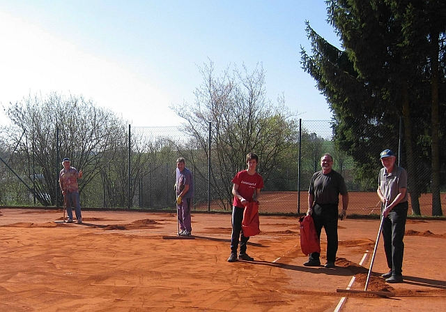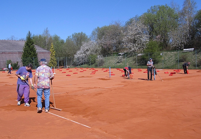 Die Tennisplätze wurden am Dienstag, 03.04. aufgesandet. Gleichzeitig wurden die Tennisplanen angebracht. |