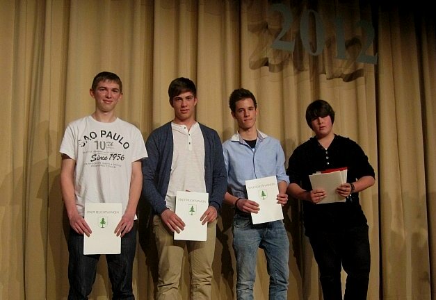 Bild vorne von links: Ulrich Schödel, Noah Haas, Florian Gemein und Florian Binder;