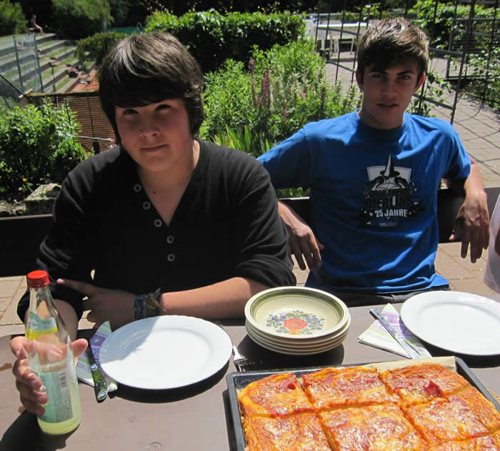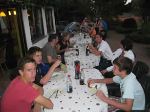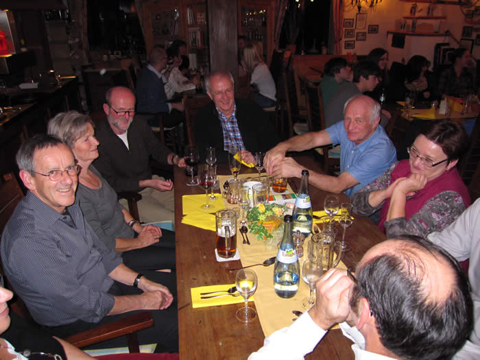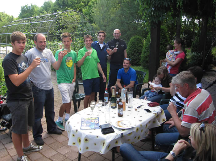 Unsere Tennisfreunde aus Obernau nahmen ihre Niederlage gelassen hin und feierten mit uns (Bild rechts) bis weit über Mitternacht hinaus. |