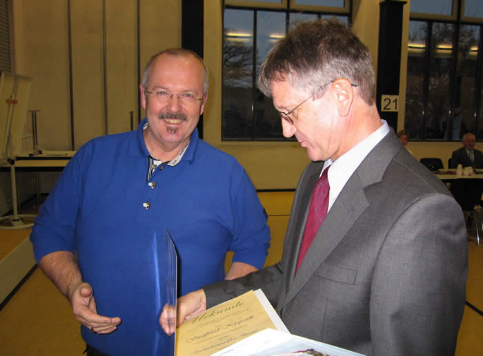 Für langjährige Mitgliedschaft erhielt Georg Spaniel von Peter Wehringer