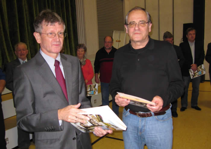 Peter Wehinger überreicht die Treuenadel in Silber an Karl Preiß (rechts). |