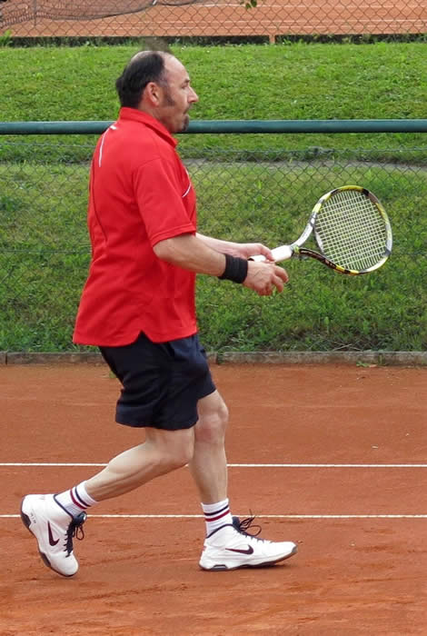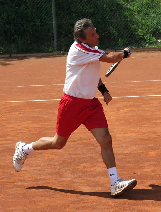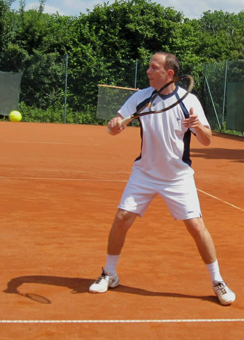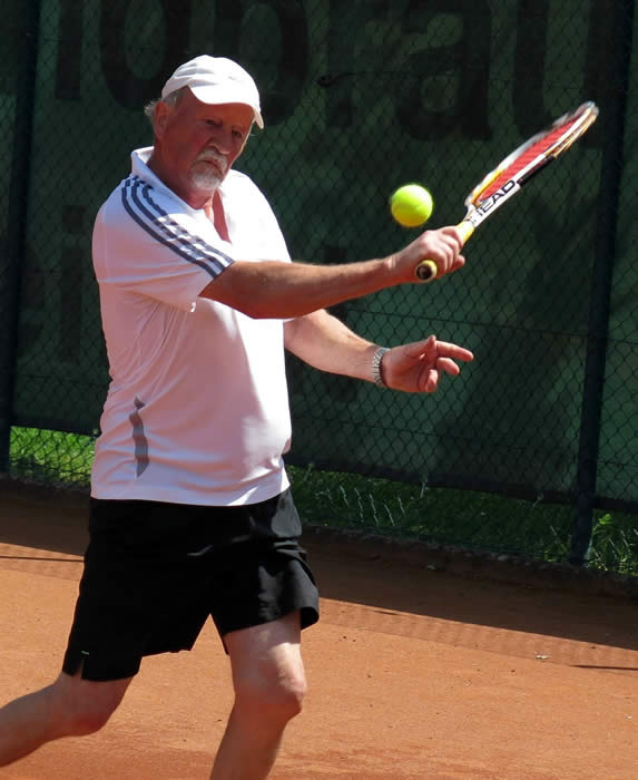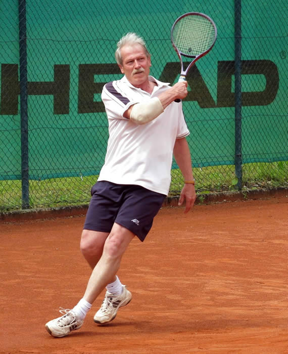 Bild links: Dr.Klaus-Uwe Wolf spielte im Einzel seine Routine aus und gewann in zwei Sätzen.