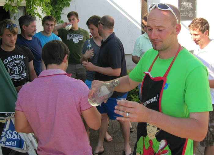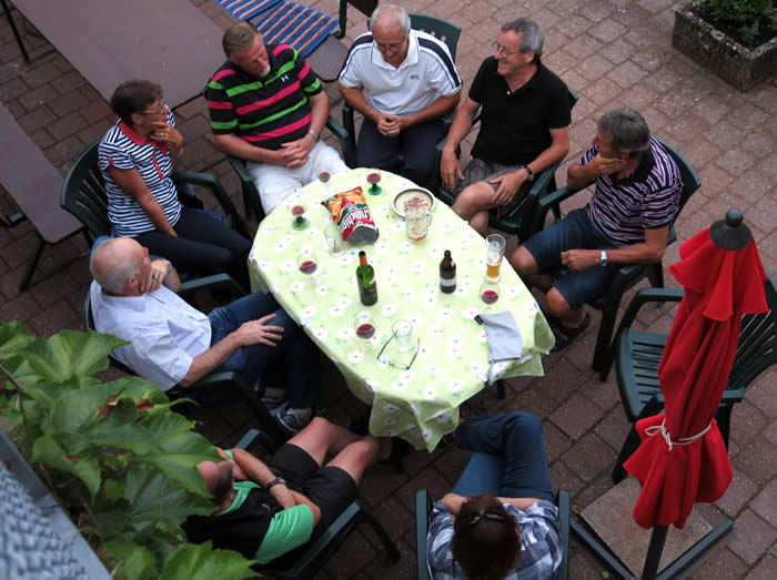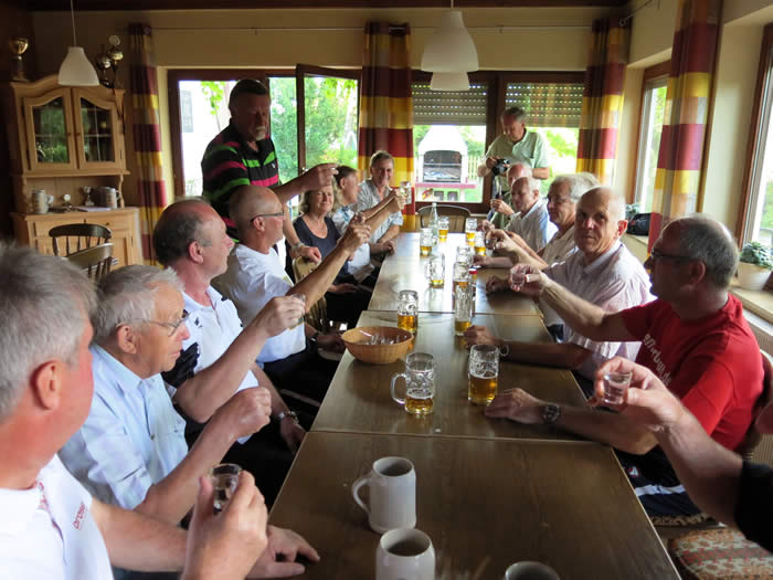 in Birkach genossen (Bild rechts) . Auf dem Bild fehlt unser Fotograf Karl, der nach eigener Aussage schon saubere Füße hatte.