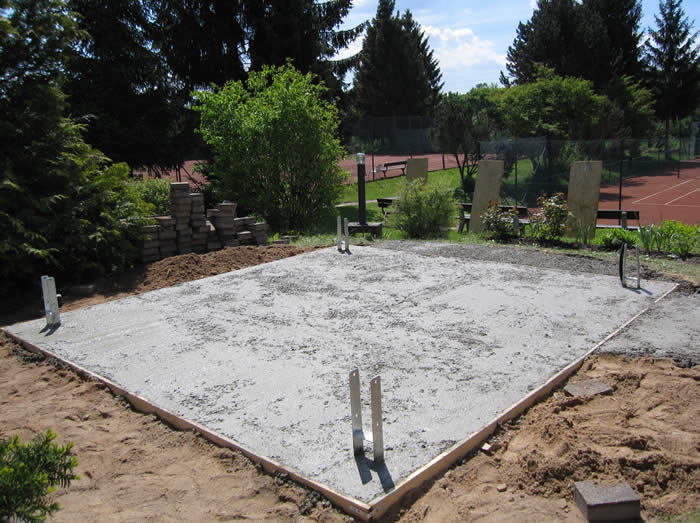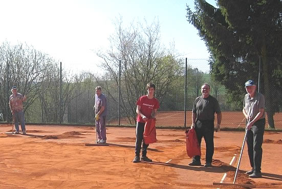 Auf den sieben Freiplätzen wurde in der Zeit von 9.00 Uhr bis 16.00 Uhr Ziegelmehl aufgetragen. Tage zuvor wurden die Steine und Bretter von den Linien entfernt und die Plätze von Laub, Nadeln und altem Material befreit.