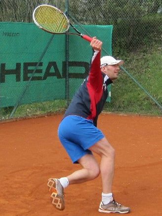Volker Egerer und Florian Krommer (linkes Bild von links) boten im 3er Doppel eine sehr gute Leistung und sorgten für den wichtigen 5.Punkt. Der Herren 55 Landesligaspieler Konrad Pflanz (Bild rechts) half bei den 1.Herren aus, gewann sein Einzel im Super-Tiebreak mit 16:14 ! und siegte an der Seite von Uli Peschke im Spitzendoppel. Weitere Punkte im Einzel holten Daniel Rudek an Postition drei, Nicolas Pötzl an Position fünf und Volker Egerer an Position sechs. |