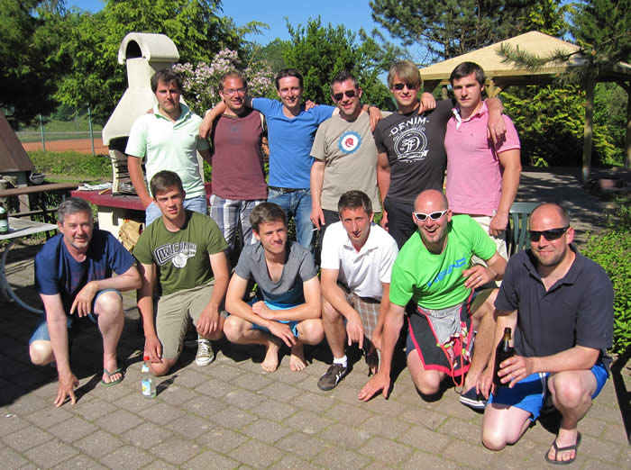 Bild: Herren vom Jahr 2012: hinten v.l.: Nicolas Pötzl, Volker Egerer, Daniel Rudek, Christian Lechner, Frank Pötzl. Vorne v.l.: Markus Hirsch, Uli Peschke und Mannschaftsführer Florian Krommer. |