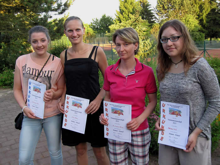 Im Anschluss an die Endspiele fand die Siegerehrung im Tennisheim statt. In Vertretung des Sportwarts Frank Pötzl würdigte der Abteilungsleiter Helmut Peschke die gezeigten Leistungen und den sportlich fairen Einsatz aller Teilnehmer. Den Siegern und Platzierten überreichte er Pokale und Urkunden.