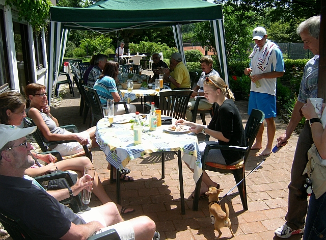 Bild links : Ein feines kaltes Buffet hatten die Damen zur Aufstiegsfeier vorbereitet. Bei herrlichem Sommerwetter wurde die Meisterschaft dann mit Freunden ausgiebig gefeiert.