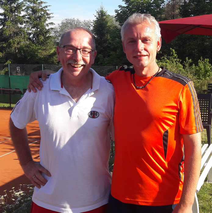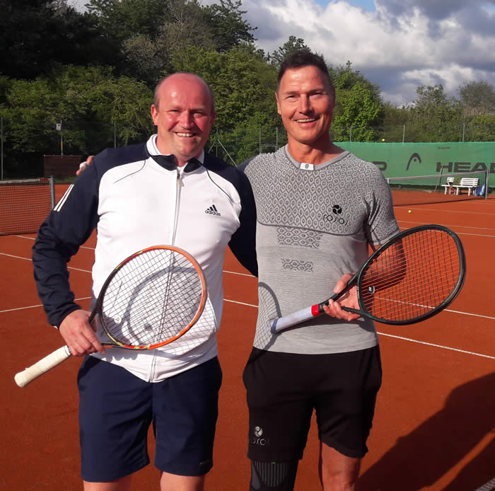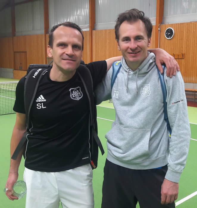 Gegen die spielstarken Steiner gelang unseren Herren 30 in der Tennishalle des TSV Rohr ein verdienter 4:2 Erfolg. Die erste Spielrunde brachte eine beruhigende 2:0 Führung durch Ulrich Peschke (Bild rechts) und Wolfgang Roth (Bild links), die durchwegs überzeugten und ihre Partien jeweils mit einem klaren 10:2 Sieg im Match-Tiebreak abschlossen. Libor Grznár spielte im Spitzeneinzel gegen den defensiv stark dagegen haltenden Stefan Herprich einfach toll und sorgte mit seinem 6:2 und 7:5 Sieg für die wichtige 3:0 Führung. Florian Krommer zeigte an Position drei gutes Tennis, unterlag aber in der engen Partie gegen den sehr druckvoll spielenden Marcus Schmitt knapp mit 6:4 und 7:5. Nach dieser 3:1 Führung musste sich unser Spitzendoppel mit Libor Grznár und Ulrich Peschke denkbar knapp mit 10:8 im Match-Tiebreak geschlagen geben. Dafür sicherte unser gut harmonierendes 2er-Doppel mit Florian Krommer und Wolfgang Roth mit einem klaren 2-Satzerfolg den 4:2 Gesamtsieg.