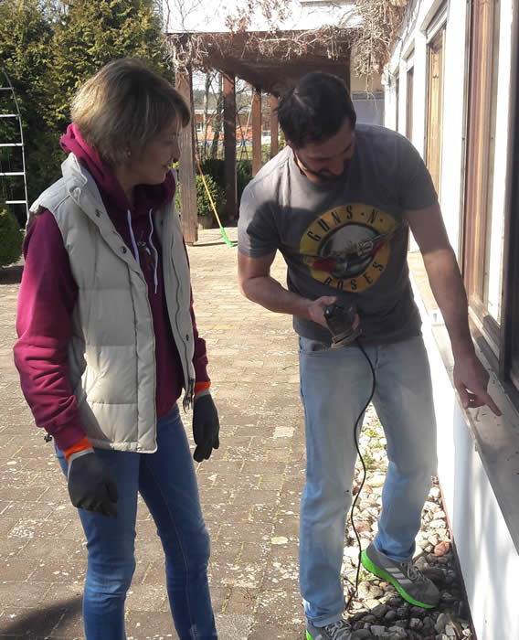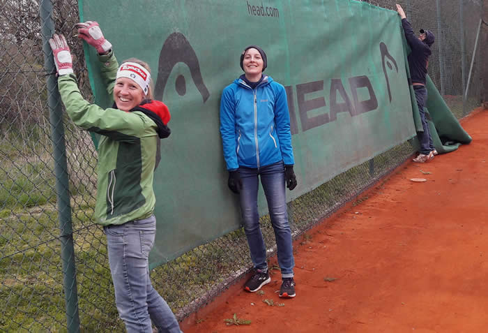 Beim Aufhängen der Windschutzplanen mussten sich Katja Mader und Andrea Winter