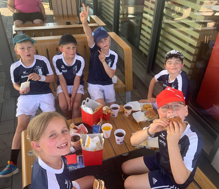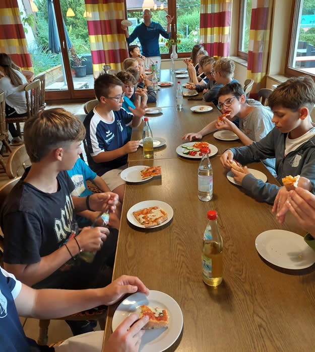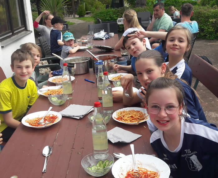 Beim gemeinsamen Essen war die Niederlage fast vergessen und es gab schon wieder strahlende Gesichter.