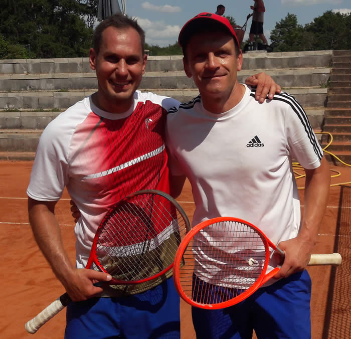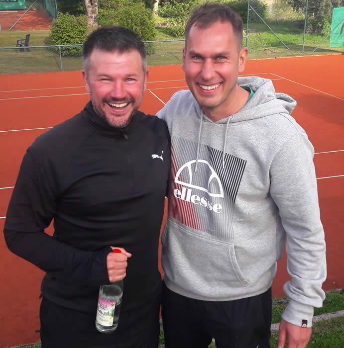 Florian und Peter Krommer gewinnen das Doppelturnier anlässlich 40 Jahre Tennis beim SV Pfeil Burk