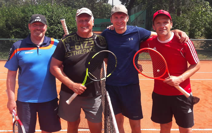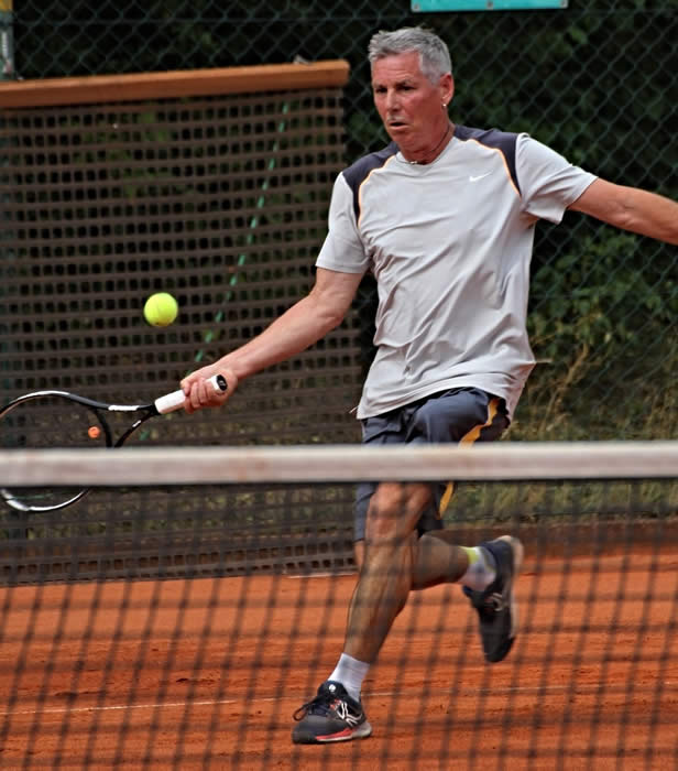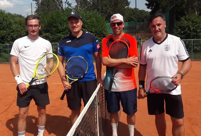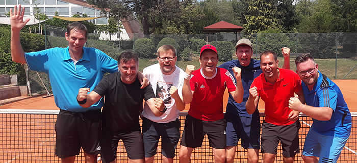 Zufriedene Gesichter gab es für unsere Herren 50 nach dem glücklichen 5:4 Auswärtserfolg beim nach Leistungsklassen besser aufgestellten TV Thalmässing. Nach der ersten Spielrunde führten unsere 50er Herren mit 2:1, wobei sowohl das Spiel von Günter Probst an Position zwei als auch von Jürgen Fryda an Position vier im alles entscheidenden Match-Tiebreak extrem knapp zu unseren Gunsten entschieden wurde. Günter Probst kam nach klar verlorenem 1. Satz erst in Durchgang zwei richtig in Fahrt und gewann diesen mit 6:2. Im Match-Tiebreak behielt er die Nerven und gewann nach langem hin und her mit etwas Glück mit 13:11. Jürgen Fryda musste vor dem Match-Tiebreak gewaltig Energie aufbringen, als er den 1.Satz mit 7:6 gewann und anschließend den 2.Satz knapp mit 7:5 abgeben musste. Respekt wie unser Jürgen im Match-Tiebreak kämpfte, beim Stande von 7:9 zwei Matchbälle abwehrte und diesen noch mit 11:9 viel umjubelt für sich entschied. Gerhard Schöller konnte gegen den sehr sicher aufspielenden Christian Steiger nichts ausrichten und unterlag glatt in zwei Sätzen. In der zweiten Spielrunde reichte es für Hans-Martin Bachmann im Spitzeneinzel trotz zahlreicher guter Aktionen leider nicht ganz. Nachdem Dr. Detlef Fuchs an Position fünf klar in zwei Sätzen das Nachsehen hatte, stellte Alexander Kleinert mit einer ausgesprochen guten Leistung und einem unangefochtenen Zweisatzerfolg den 3:3 Ausgleich her, der für die anschließenden Doppelentscheidungen ausschlaggebend war. Im Spitzendoppel kam Peter Sachse zum Einsatz, der zusammen mit Hans-Martin Bachmann das Gästedoppel beim 6:1 und 6:1 Sieg klar beherrschte. Den Sieg perfekt machte unser gut eingespieltes 2er-Doppel mit Günter Probst und Alexander Kleinert, die ihre Gegner stets gut im Griff hatten und sie mit vielen guten Netzaktionen mit 6:2 und 6:3 bezwangen. Unser 3er- Doppel mit Jürgen Fryda und Gerhard Schöller hielt gut mit und enttäuschte trotz der knappen 6:3 und 6:4 Niederlage keineswegs.
