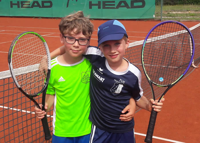 Im letzten Spiel der Hauptrunde zeigten beide Kids gutes Tennis. Benedikt Peschke (rechts) unterlag hier aber nach schönen Ballwechseln. |