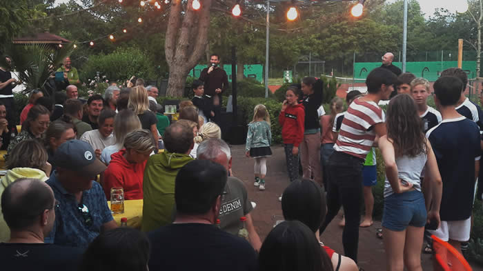 bei bestem Tenniswetter mit Bekanntgabe der einzelnen Spielpaarungen