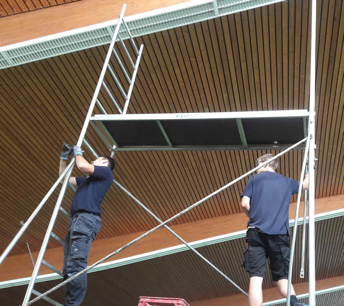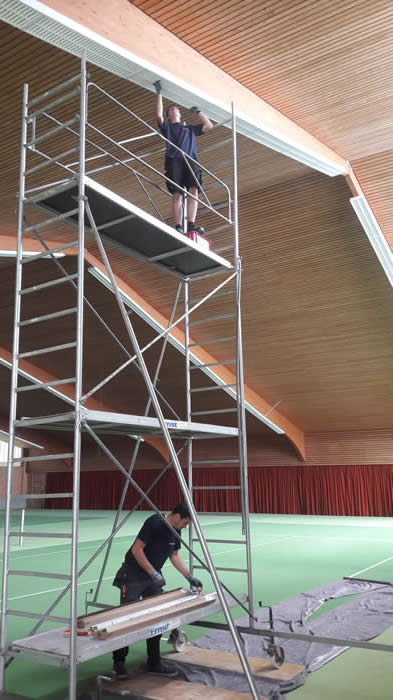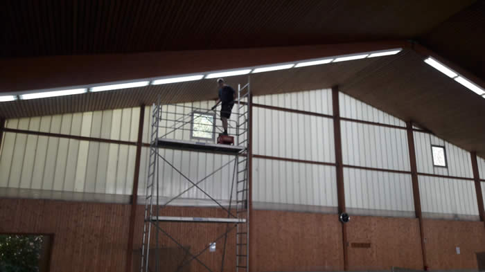 Austausch der alten Leuchtstoffröhren gegen LED-Röhren kurz vor der Hallensaison