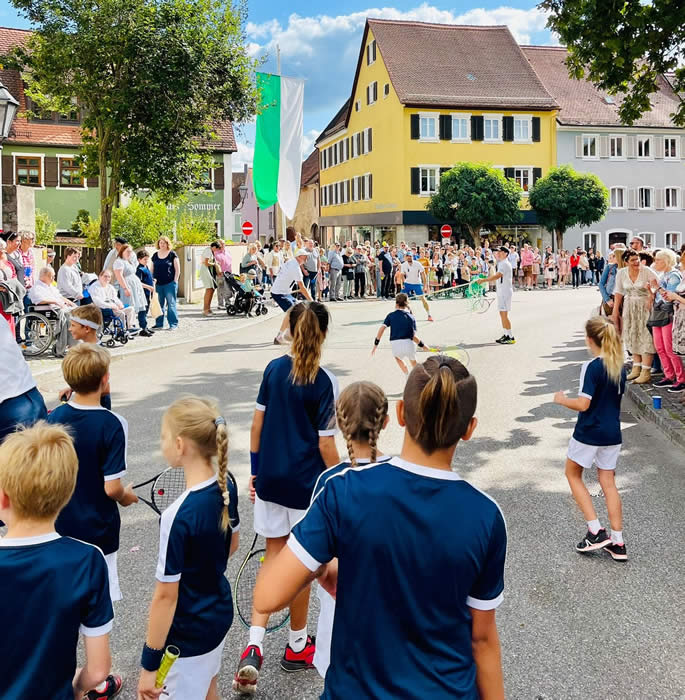 Die Tennisabteilung war als Gruppe "125 Jahre Tennis in Feuchtwangen" beim traditionellen Mooswiesenfestzug dabei