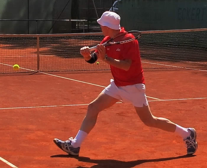 Im Bild bereitet sich Anton Krommer auf den Vorhandschlag vor.