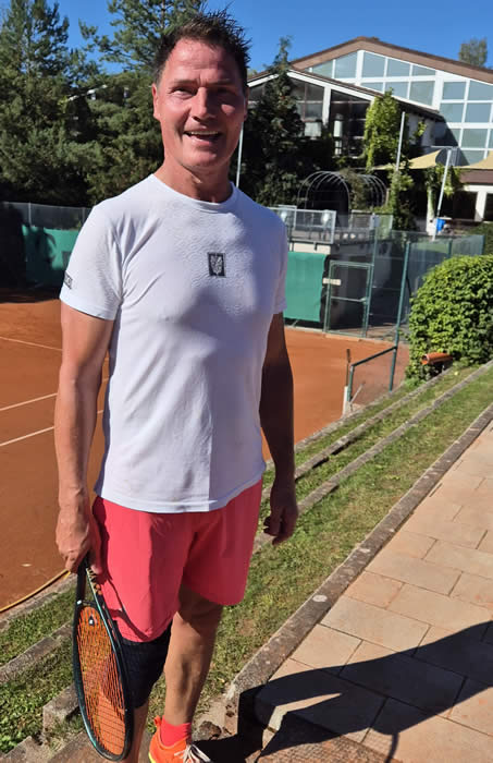 Großes Lob erhielten auch dieses Jahr wieder die Verantwortlichen der TuS-Tennisabteilung von den zahlreichen Zuschauern und Teilnehmern für die Organisation der durchgeführten Vereinsmeisterschaften und für das schon traditionelle Sommernachtsfest, das sich an die Finalspiele und Siegerehrung anschloss. Obwohl der Wettergott diesmal nicht besonders gut mitspielte konnten außer beim Finale im Herreneinzel, das wegen Regens kurz unterbrochen werden musste, alle Endspiele bei zum Teil idealen Bedingungen ausgetragen werden. Aufgrund der sehr guten Beteiligung erfolgte der Start in die Vorrundenspiele für die verschiedenen Wettbewerbe und Altersklassen bereits vor Wochen, wobei man bei den Doppel- und Mixedbegegnungen immer darauf achtete, dass möglichst ausgeglichene Paarungen zustande kommen. Der Finaltag bescherte den zahlreichen Zuschauern auch diesmal wieder einen kurzweiligen Tennistag mit begeisternden und spannenden Tennisspielen. So wurden unsere jungen U10 Midcourtspieler, bei denen die Trainingsarbeit und die Teilnahme an den Verbandsrundenspielen sichtbare Erfolge erkennen lassen, mit großem Beifall bedacht. Ein Endspiel der Extraklasse lieferten sich dabei Matilda Krommer und Anton Krommer im Kampf um den Titel der U10 Midcourtspieler in der Gruppe A. In dem hochklassigen Spiel mit bis zu vierzig Ballkontakten zeigten beide technisch großes Tennisspiel und packende Ballwechsel mit dem glücklichen Ende für Anton, der Matilda nach verlorenem Tiebreak im ersten Satz im zweiten Durchgang im Tiebreak und im folgenden Match-Tiebreak mit 10:6 besiegte. Auch in der Gruppe B wurde gutes Tennis geboten, wobei der technisch gut agierende Arno Fetsch gegen den im zweiten Satz stark aufkommenden Philipp Beck mit 4:0 und 5:3 verdient Meister wurde. Bei den Bambini 12 setzte sich der sehr defensiv spielende Ben Möbus gegen den offensiv und mit guten Ansätzen agierenden Moritz Beck durch, der nach einer 4:2 Führung im ersten Satz am Ende zu hoch mit 6:4 und 6:1 passen musste. Dritte wurden Moritz Krommer und Joseph Winter. Das Einzelfinale der Knaben 15 war eine klare Angelegenheit für Simon Pflanz, der Niklas Kostenko nach starkem Spiel mit 6:0 und 6:1 besiegte. Das Endspiel der Mädchen 15 zwischen Carlotta Krommer und Leni Gottwald musste wegen kurzfristigen Ausfalls von Leni auf einen späteren Zeitpunkt verschoben werden. Die dritten Plätze belegten Luise Hedler und Helena Peschke. Bei den Junioren 18 kam es zur Neuauflage des Finales des letzten Jahres zwischen Anton Hedler und Leo Gottwald, wobei Leo im ersten Satz nahezu fehlerfrei spielte und Anton mit 6:1 sicher bezwang. Im zweiten Durchgang fand Anton bei einem 4:1 Rückstand besser ins Spiel und holte Punkt für Punkt auf, was aber letztendlich nicht zum Sieg reichte, da Leo den Tiebreak zu seinen Gunsten entschied. Den dritten Platz teilten sich Finn Rössle und Sem Trumpp. Bei den Erwachsenen boten die Endspiele in den Einzeln auch dieses Jahr wieder sehenswertes Tennis mit vielen tollen Aktionen, die von den Zuschauern entsprechend mit Beifall belohnt wurden. Bei den Damen hatten sich Andrea Winter und Carina Glatter für das Finale qualifiziert und lieferten dabei eine völlig ausgeglichene Partie mit langen Ballwechseln und spannendem Verlauf. Nachdem der erst Satz im Tiebreak an Andrea ging gewann Carina den zweiten Durchgang nach einer 5:2 Führung am Ende mit 6:4, so dass der Match-Tiebreak die Entscheidung bringen musste, den Andrea nach zweieinhalbstündiger Spielzeit dann deutlich mit 10:4 für sich entscheiden konnte. Auch im Endspiel der Herren 40 zwischen Volker Egerer und Alexander Kleinert wurde den Zuschauern einiges geboten. Nach einer schnellen und schön herausgespielten 4:1 Führung von Volker konterte Alexander geschickt, erspielte sich Punkt um Punkt und beim Stande von 4:4 stand das Spiel auf des Messers Schneide. Doch nach einer Reihe von Vorteilen auf beiden Seiten holte sich Volker den ersten Satz mit 6:4 und den zweiten Durchgang sehr umkämpft mit 6:3. Einen Höhepunkt der Meisterschaftsspiele bildete auch dieses Jahr das Herrenfinale das von Andreas Möller und Peter Krommer bestritten wurde. Beide zeigten beeindruckendes Tennis mit starkem Service, temporeichen Grundschlägen und guten Szenen am Netz. Am Ende gewann Andreas verdient mit 6:3 und 6:2. Vor 33 Jahren konnte sich Peter (Bild oben) gegen Andreas bei den Bambinis knapp in drei Sätzen durchsetzen. Nachdem vormittags die Paarungen für die Mixed-Doppel ausgelost waren starteten 11 Paarungen in das seit Jahren sehr beliebte Mixed-Turnier. Vereinsmeister wurden hierbei Sieglinde Wolf und Daniel Rudek die sich in einer sehenswerten Partie gegen Monika Bahle und Dr. Klaus-Uwe Wolf durchsetzten. Den dritten Platz belegten Silvia Möbus und Martin Bautz mit ihrem Sieg gegen Lisa Schmidt und Alexander Kleinert. Im Damendoppel harmonierten Carina Glatter und Lisa Schmidt bestens und holten den Titel mit einem überzeugenden 6:2 und 6:1 Sieg gegen Thea Egerer und Daniela Müller. Als weiteren Höhepunkt der Meisterschaftsspiele darf man das Herrendoppel bezeichnen, das mit interessanten und taktischen Ballwechseln immer wieder aufwartete und dafür ordentlichen Beifall erhielt. Nach zweistündiger Spielzeit erkämpften sich Peter Krommer und Markus Pflanz den Titel gegen das gleichwertige Duo Florian Krommer und Rüdiger Rössle. Für ihre dargebotene Leistung erhielten sie von allen Zuschauern großen Zuspruch.