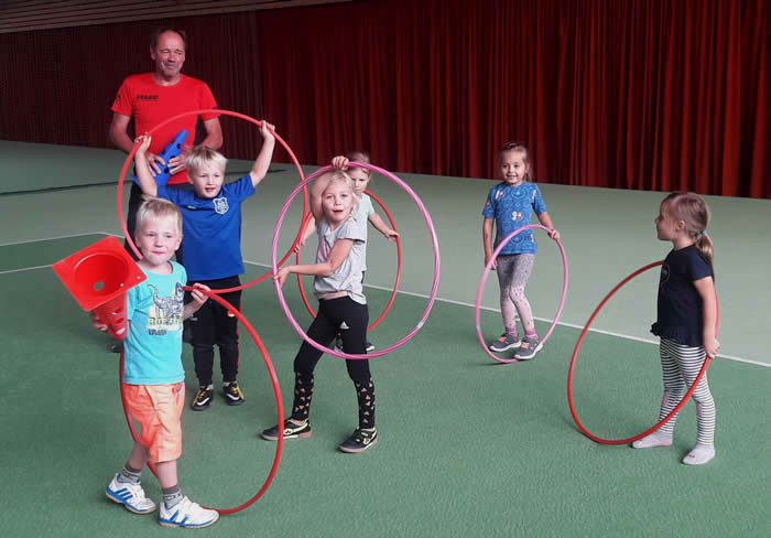 Unsere "Zwergerlgruppe" im Oktober 2023 mit Trainer Andreas Arendt beim Aufwärmen. |