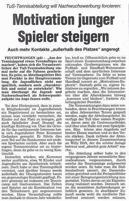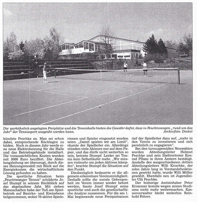 dienste um den Tennissport in Feuchtwangen wurden Helmut Peschke
