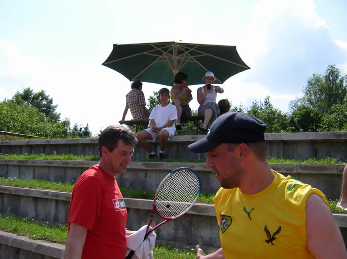 Arbeit in der Tennisabteilung ein Präsent. Rechts im Bild "Josl`s" Mann-