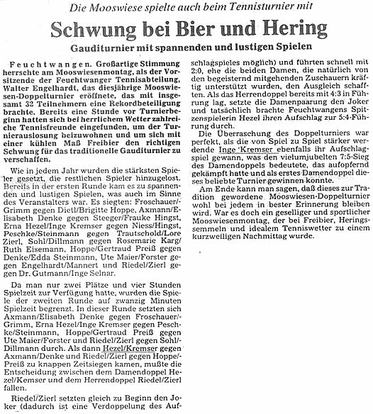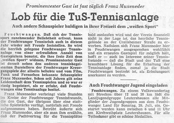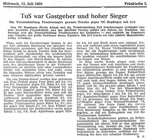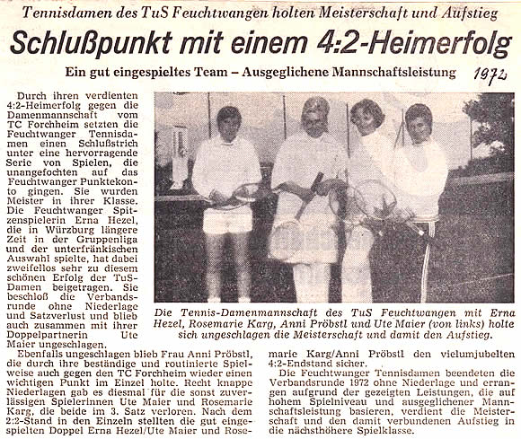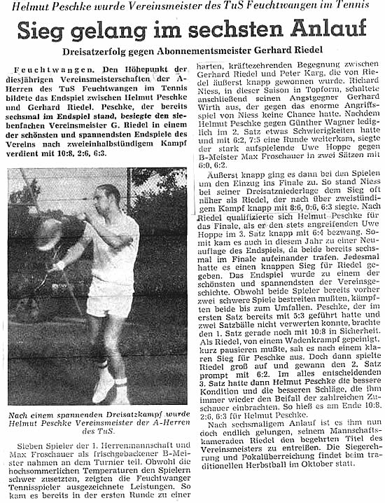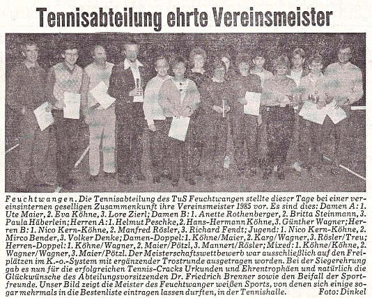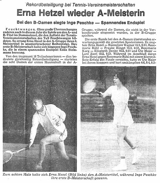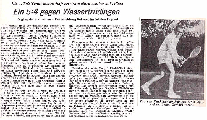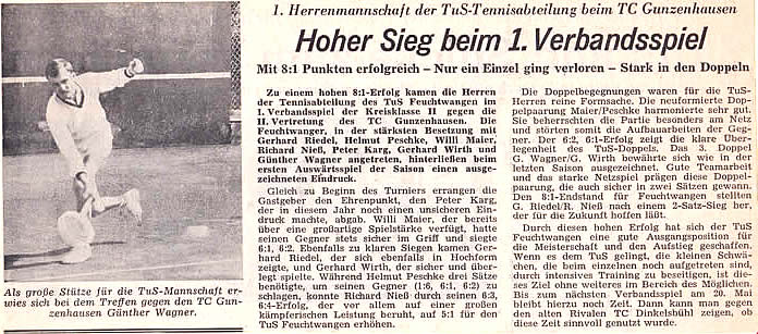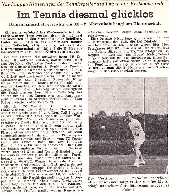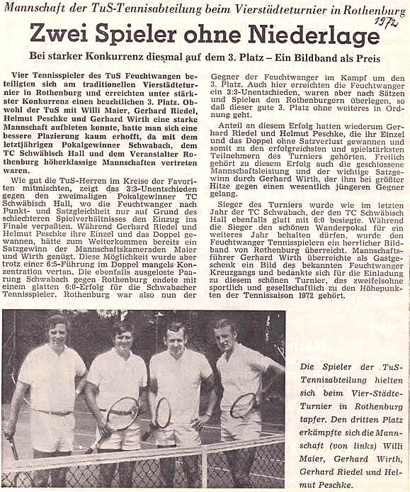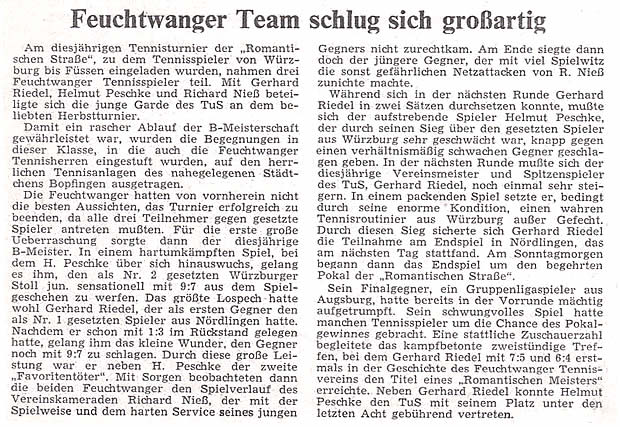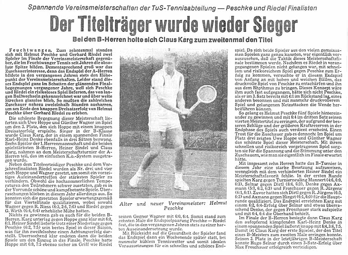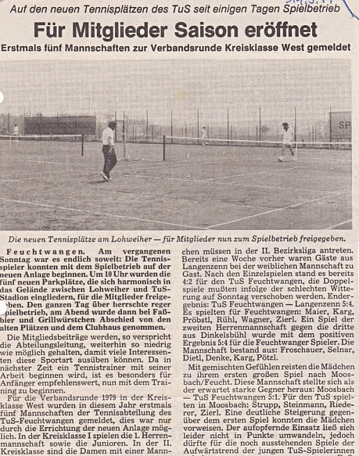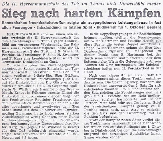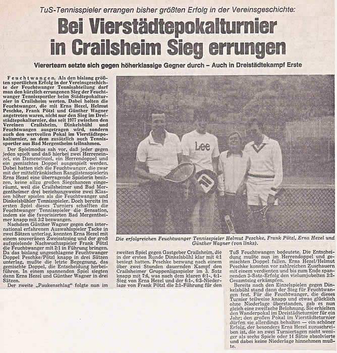 Bilder des Jahres 1980 Schlagzeile in der FLZ vom 11.08.1980: "TuS-Tennisspieler errangen bisher größten Erfolg in der Vereinsgeschichte:" "Bei Vierstädte - Pokalturnier in Crailsheim Sieg errungen"