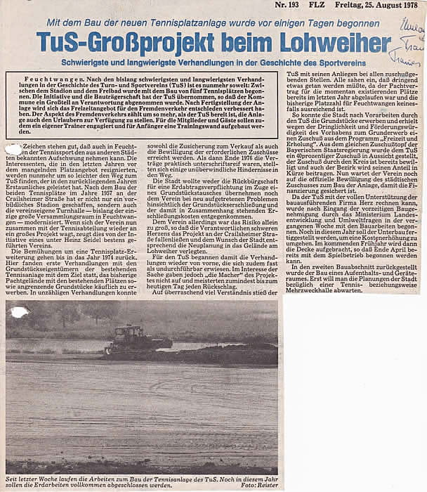 Bilder des Jahres 1978 Gespielt wurde noch auf der Tennisanlage an der Crailsheimer Straße Die Verlegung zum Sportplatzgelände des TuS erfolgte in den Jahren 1978 und 1979 Bilder vom Gelände der neuen Tennisanlage des TuS Feuchtwangen