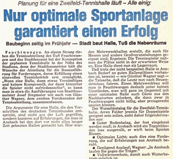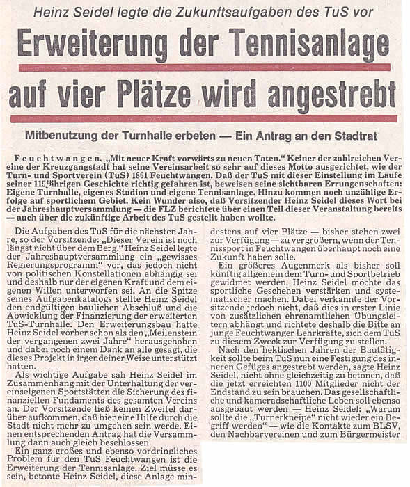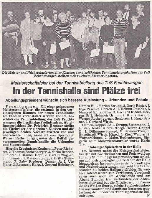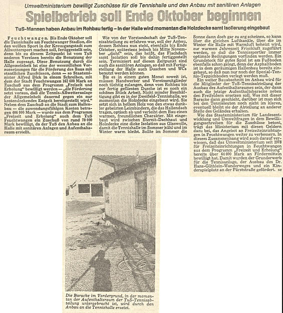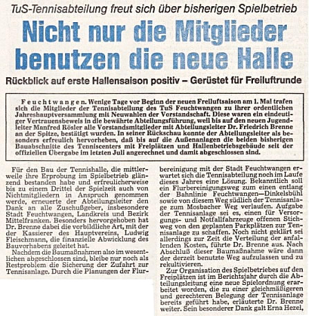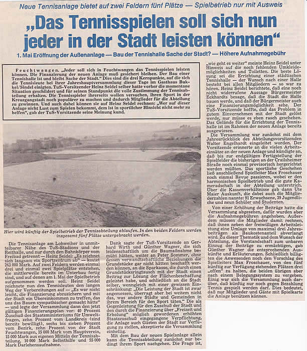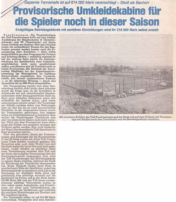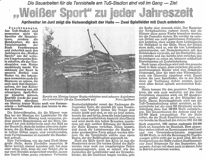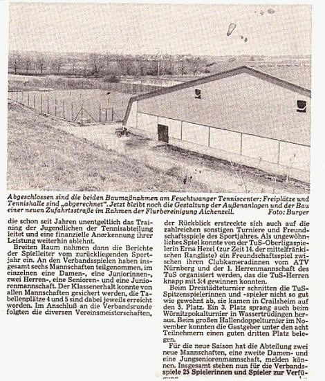 Einweihungsfeier der Tennishalle Bericht in der FLZ vom 20. Juli 1982