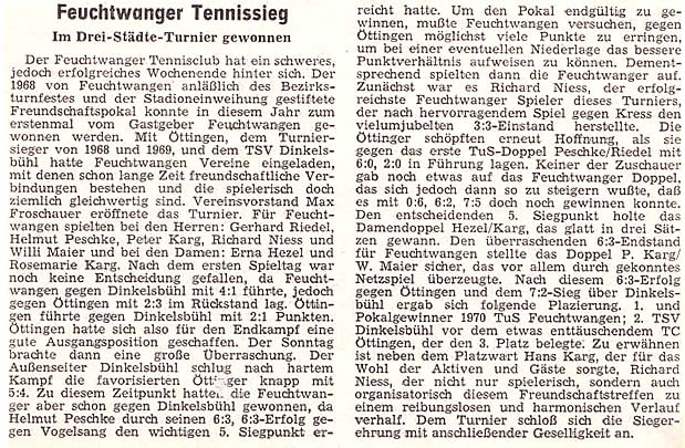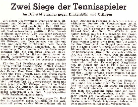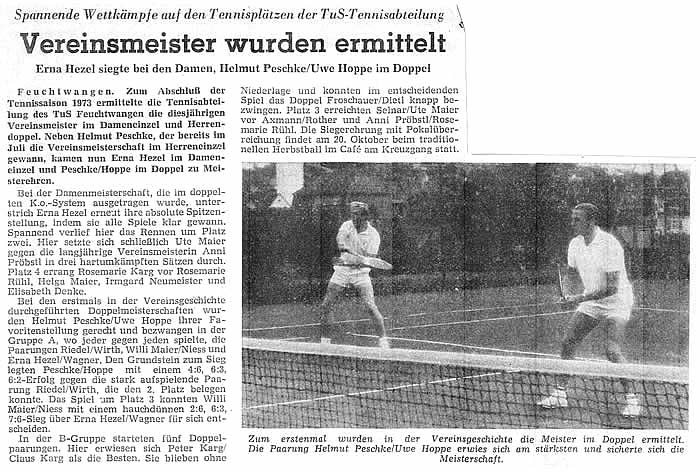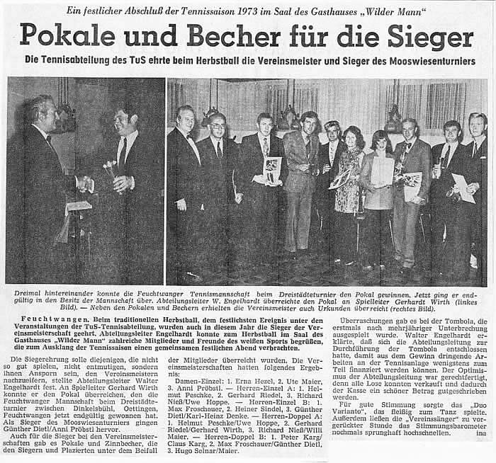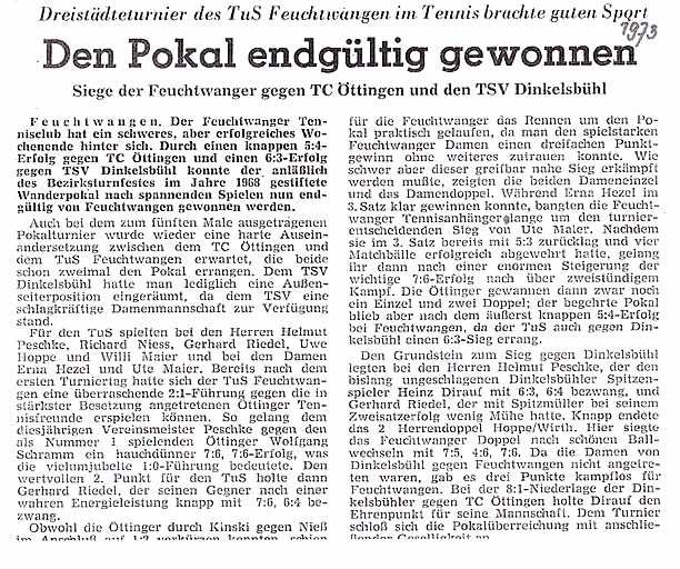 Dritter Sieg beim Dreistädteturnier - Pokal nun endgültig gewonnen Vereinsmeisterschaften 1973
