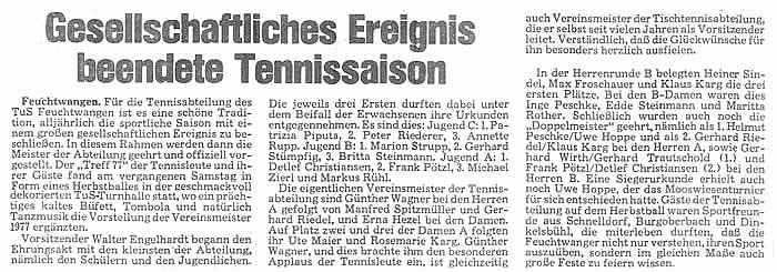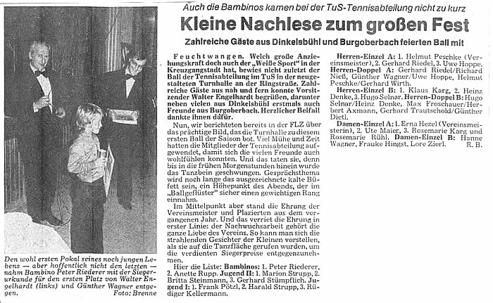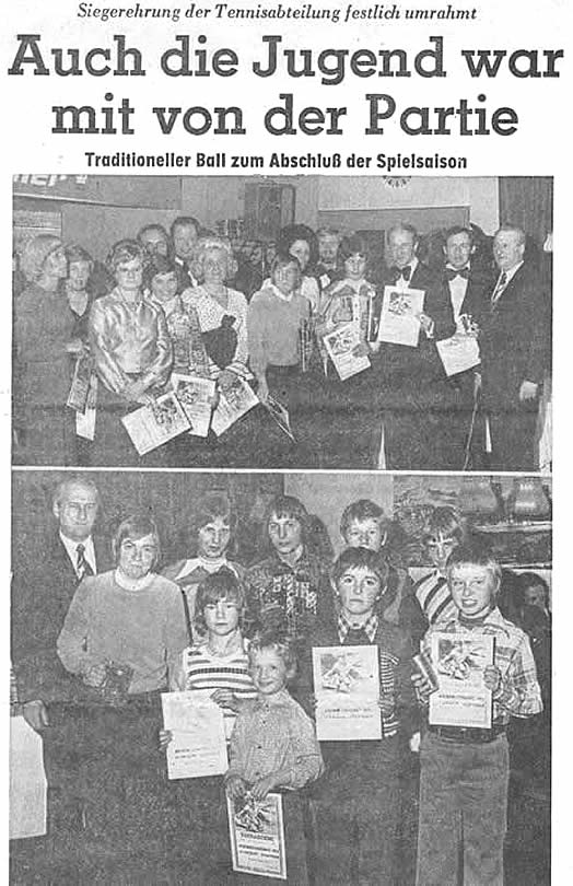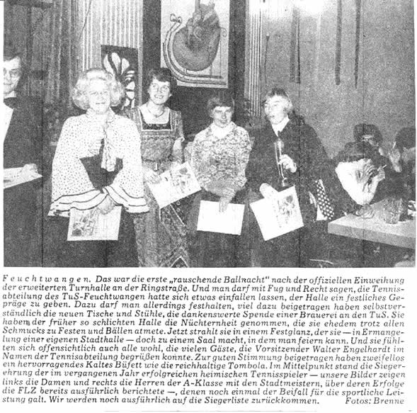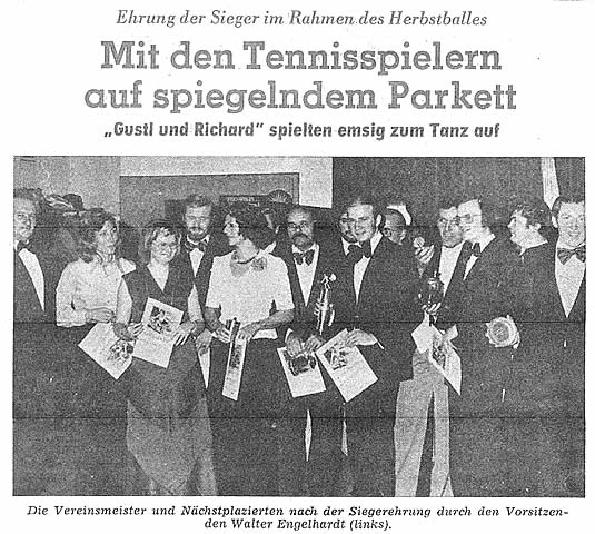 Vereinsmeisterschaften Großer Herbstball in der TuS - Turnhalle FLZ vom 06. Dezember 1976: "TuS-Tennisabteilung eröffnete die Ballsaison"