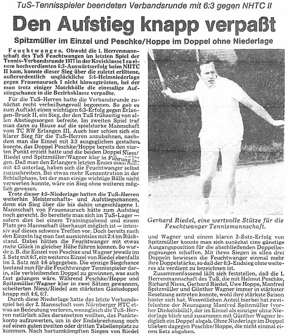 Bilder des Jahres 1977 Von der Tennisanlage an der Crailsheimer Straße mit zwei Plätzen Bericht in der FLZ vom 29.April 1977