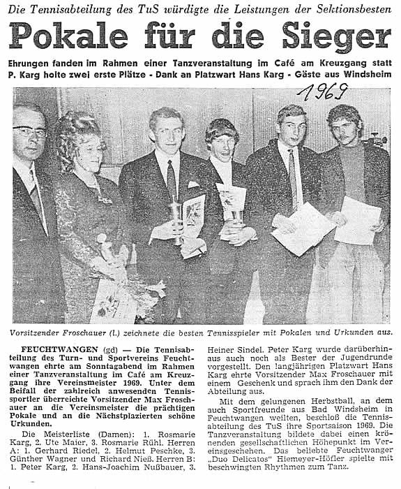 Bilder des Jahres 1969 Vereinsmeisterschaften 1969 Herren A - Einzel Traditioneller Saisonabschluss im Café am Kreuzgang