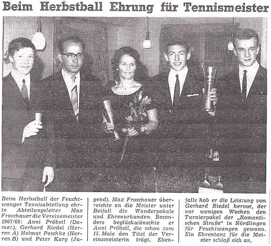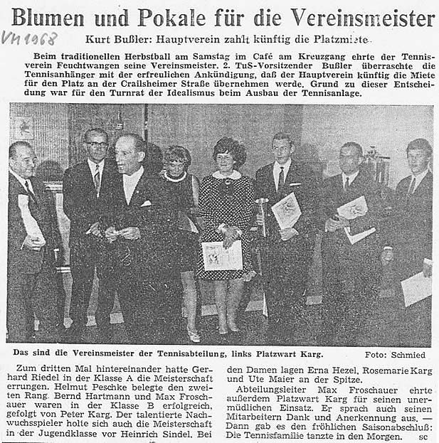 Vereinsmeisterschaft 1968 Herren A - Einzel Traditioneller Herbstball im Café am Kreuzgang